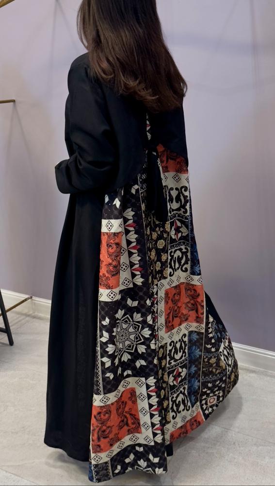 " عباية باللون الأسود من قماش اللنن فيسكوس الفاخر